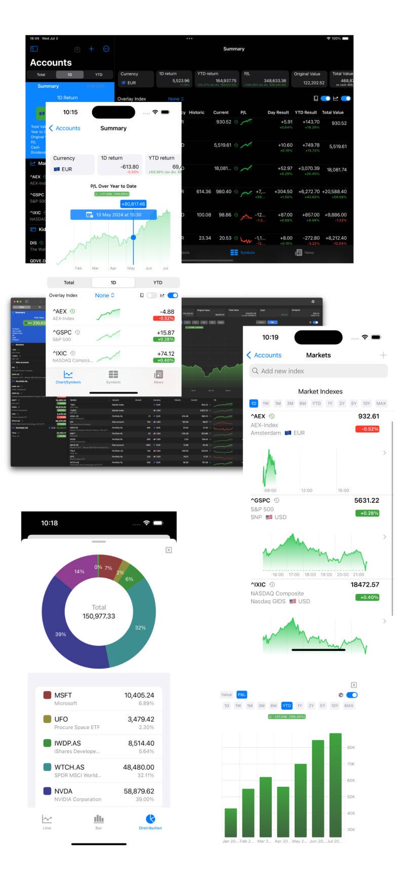 - Manage and analyze your positions and view the balance on all your different accounts